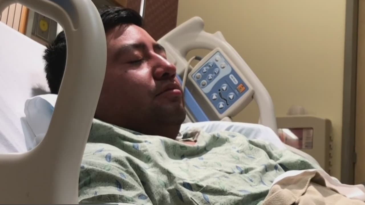 El hombre hispano estaba cambiando el parabrisas de un auto y narra el momento en que el agresor lo atacó con un rastrillo de jardinería. Ahora se recupera de sus heridas en un hospital, donde fue sometido a cirugía. El agresor podría salir en libertad con una fianza de $25,000.