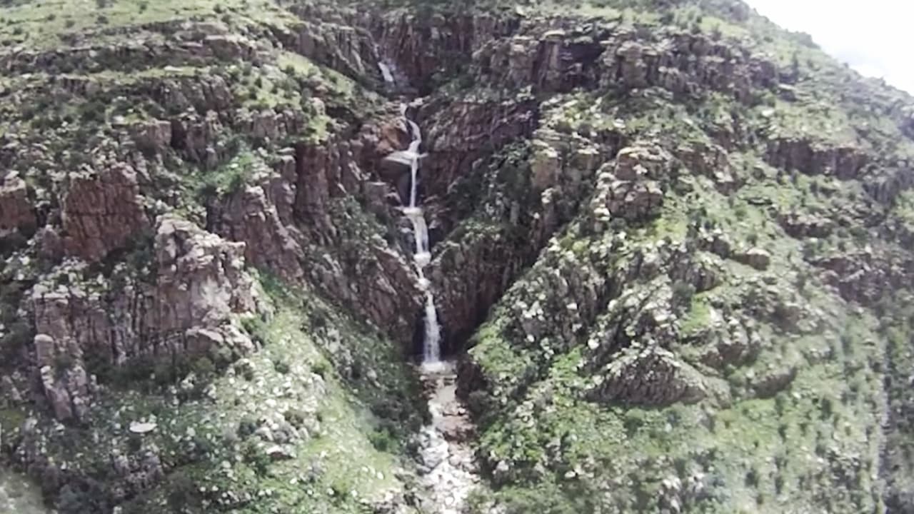 área es Palisades Trail Waterfalls en Catalina's. Autoridades advierten del peligro de los senderos inundados.