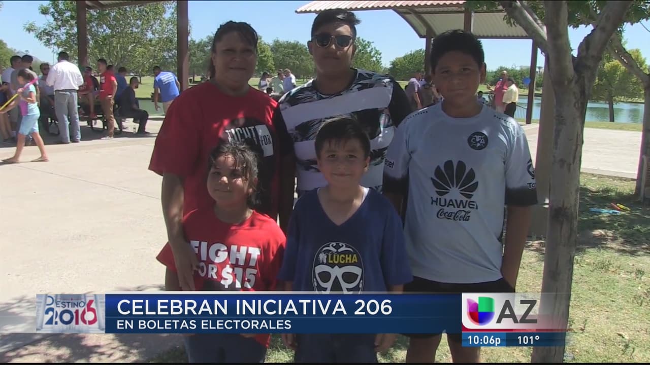 Decenas de voluntarios celebraron que la iniciativa 206 será incluida en las boletas electorales. La iniciativa busca aumentar los salarios y mejorar la salud de las familias.