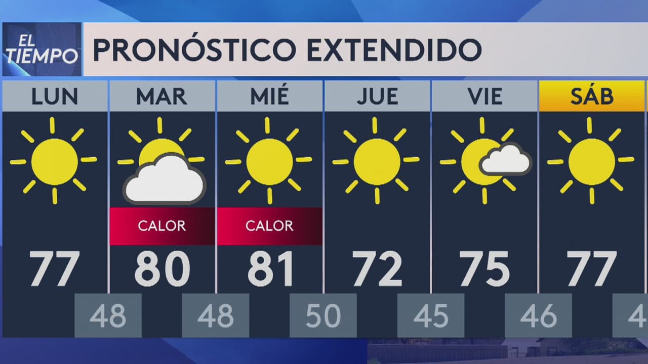 “Las temperaturas pueden ser un poco frías por la mañana, pero se calentarán agradablemente a primera hora de la tarde con máximas de entre 70 y 70 grados", indica el Servicio Meteorológico Nacional de Phoenix. Se prevén temperaturas máximas cerca de los 77 grados Fahrenheit y mínimas de 43 grados en Phoenix y algunas áreas aledañas.