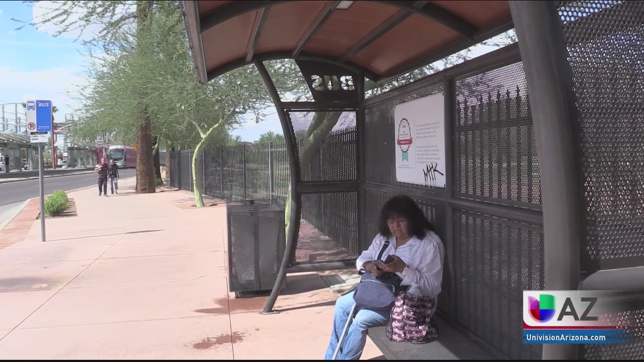 Instalan rociadores de agua en las paradas de autobús en Phoenix para hacer frente a las altas temperaturas
