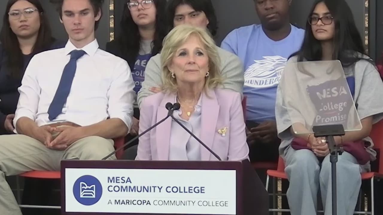 En su visita a Arizona, la primera dama de Estados Unidos, Jill Biden, visitó el colegio comunitario de Mesa, en el que resaltó la calidad de la educación y las ayudas disponibles para que los jóvenes tengan mejores oportunidades.