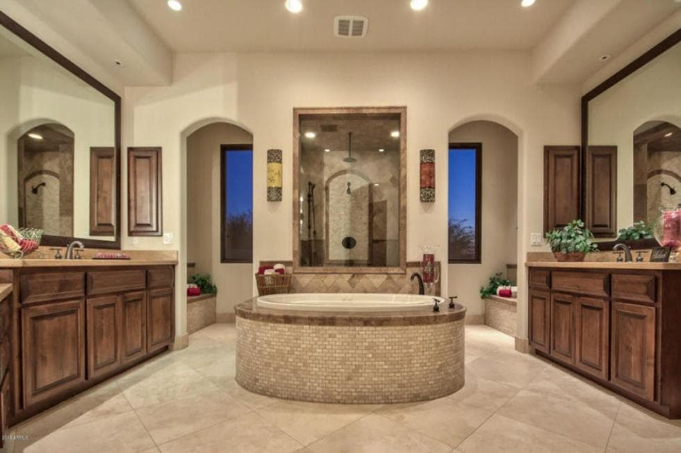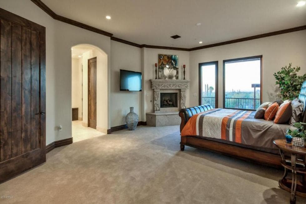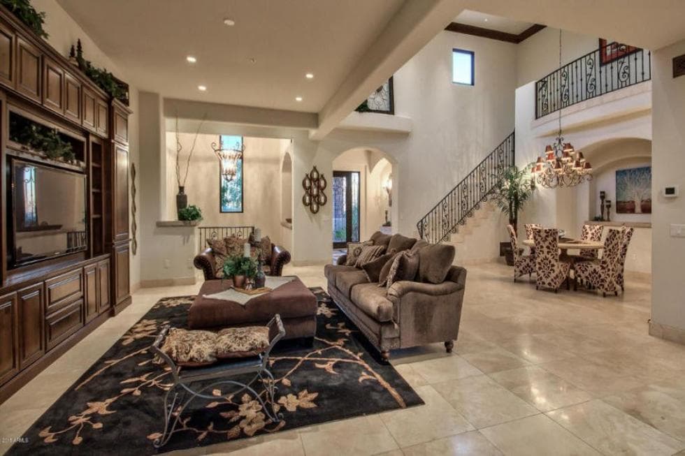 Construida en 2001, la casa de estuco de color marrón tiene 7,971 pies cuadrados y está situada en 4.4 acres amurallado con paisajes desérticos y áreas de césped de hierba sintética.