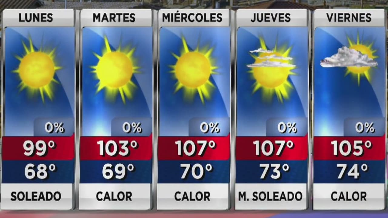 Después de temperaturas 'más frescas", este fin de semana regresamos al fuerte calor. Phoenix se prepara para altas temperaturas de miércoles a jueves. Afortunadamente, las noches están más agradables. Este lunes la máxima podrá llegar a los 97 grados.