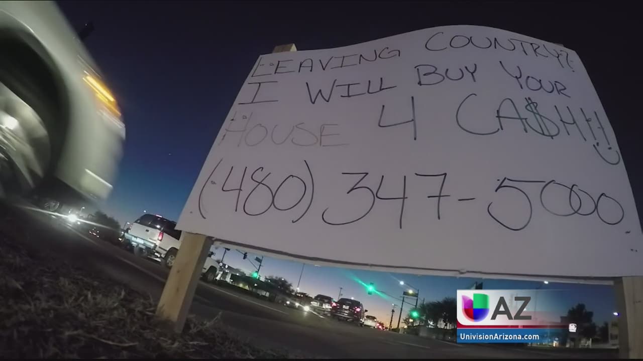 Unos letreros escritos a mano y colocados en zonas de población hispana empezaron a aparecer el mensaje ofrece la compra en efectivo de casas de personas que piensen irse del país.