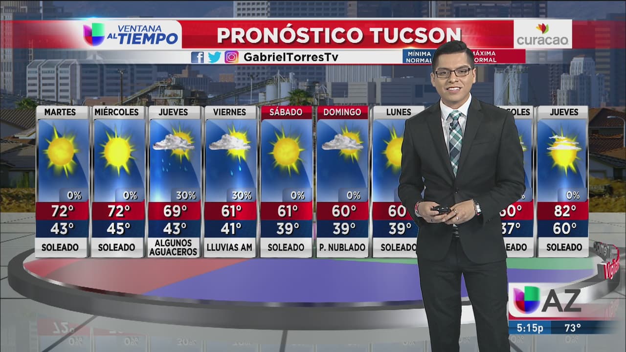Un inicio de semana con una temperatura máxima de 74 grados en Phoenix, 72 en Casas Grandes y 73 en Tucson, para este martes las condiciones serán similares se esperan mínimas alredor de los 40 grados. Manténgase abrigado.