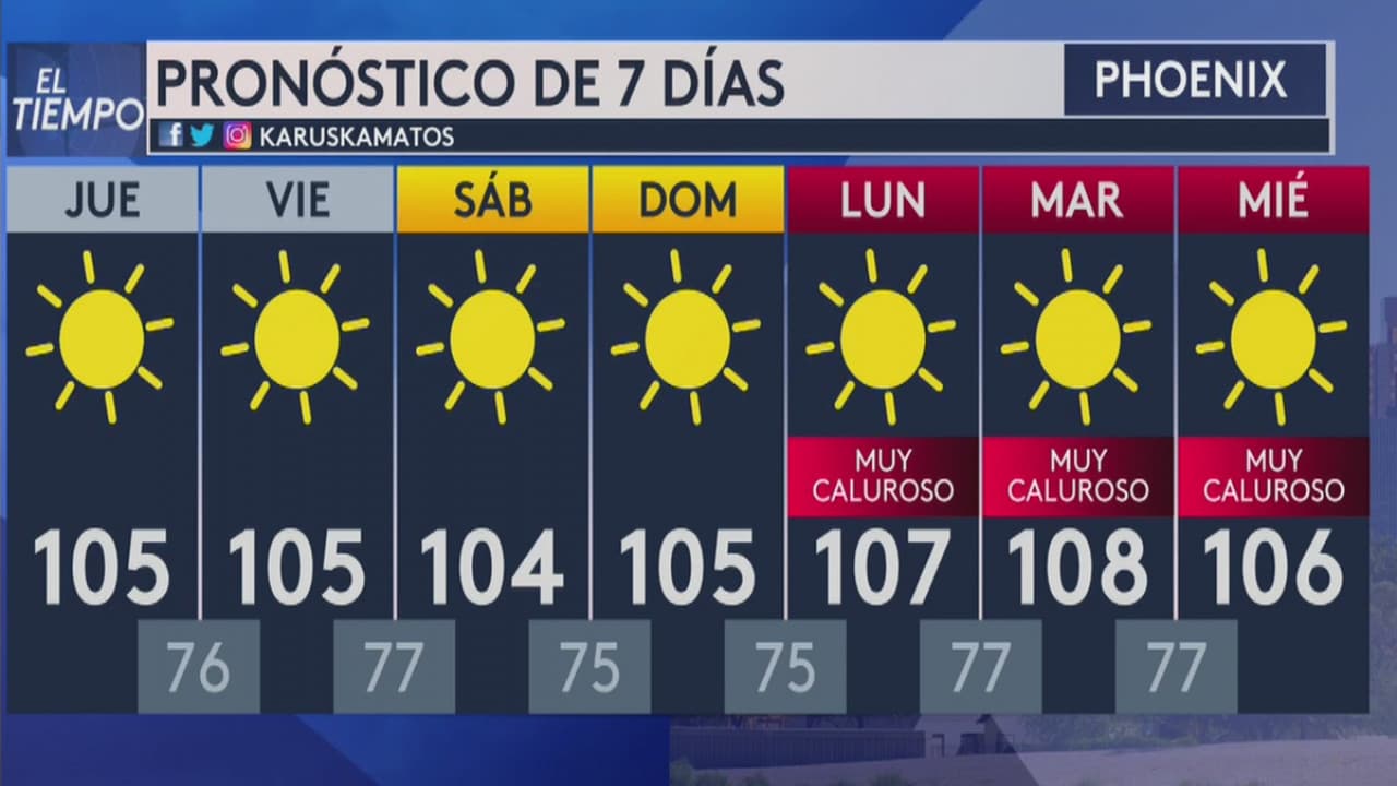 El área metropolitana de Phoenix tendrá temperaturas máximas cerca de los 106 grados Fahrenheit y mínimas de 74 grados este jueves.