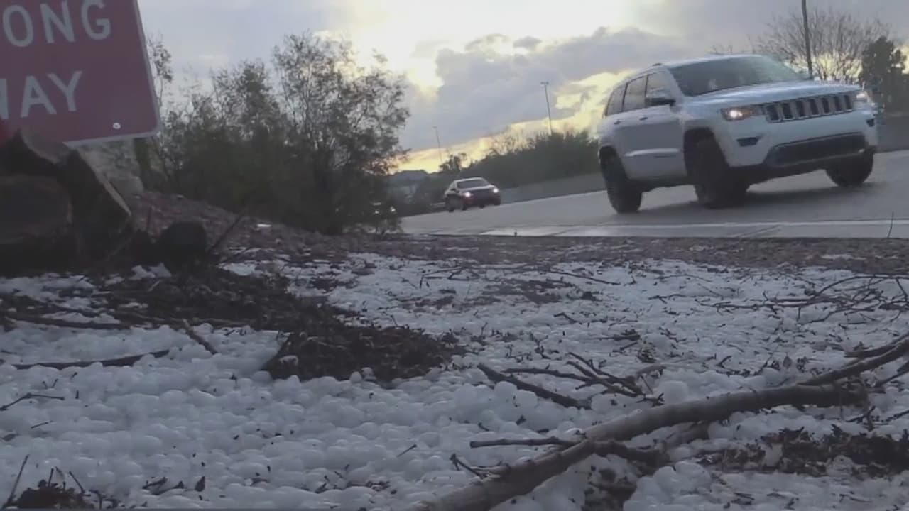 Lluvia y granizo cubren de blanco algunas calles y autopistas de Arizona