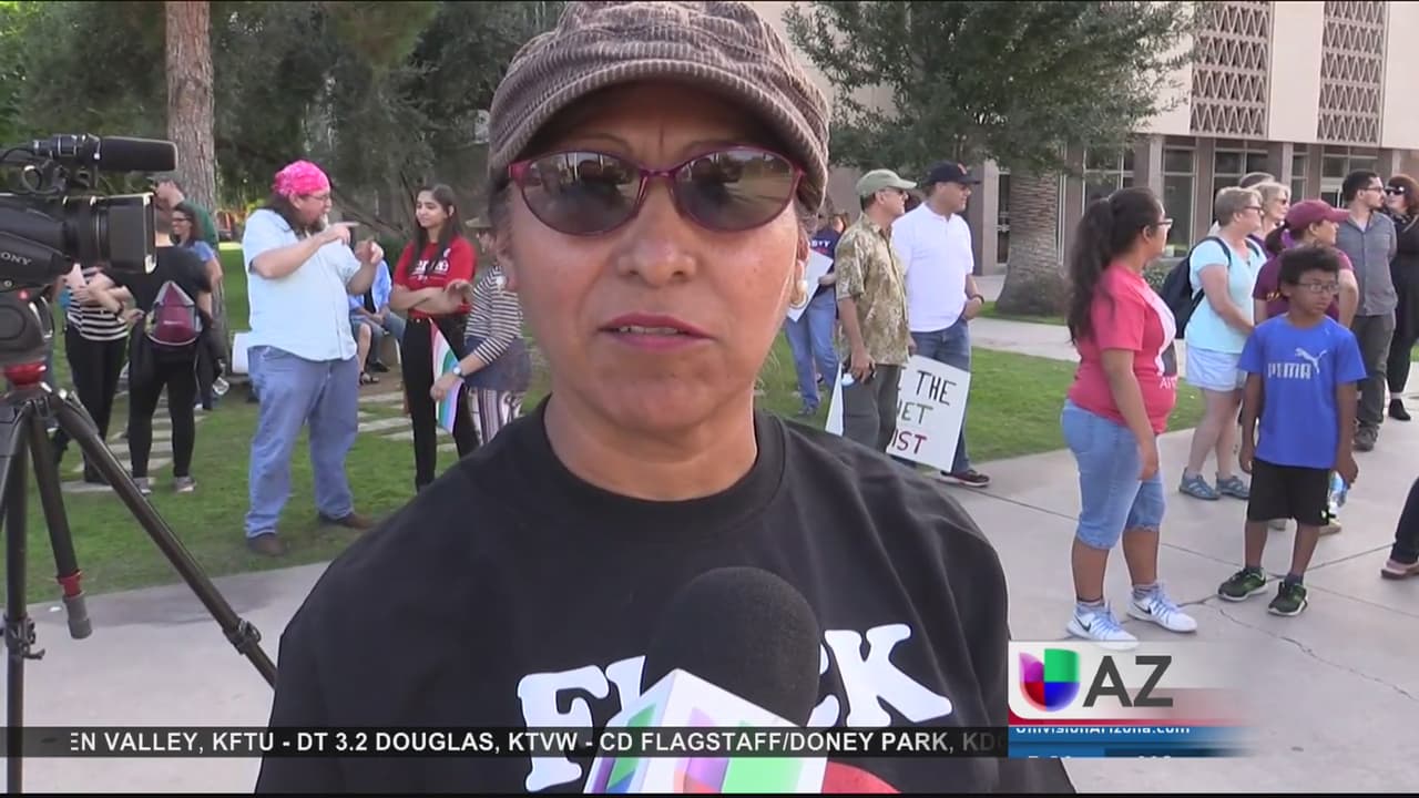 Un numeroso grupo de manifestantes protestó en las afueras del capitolio estatal de Arizona contra el presidente electo.