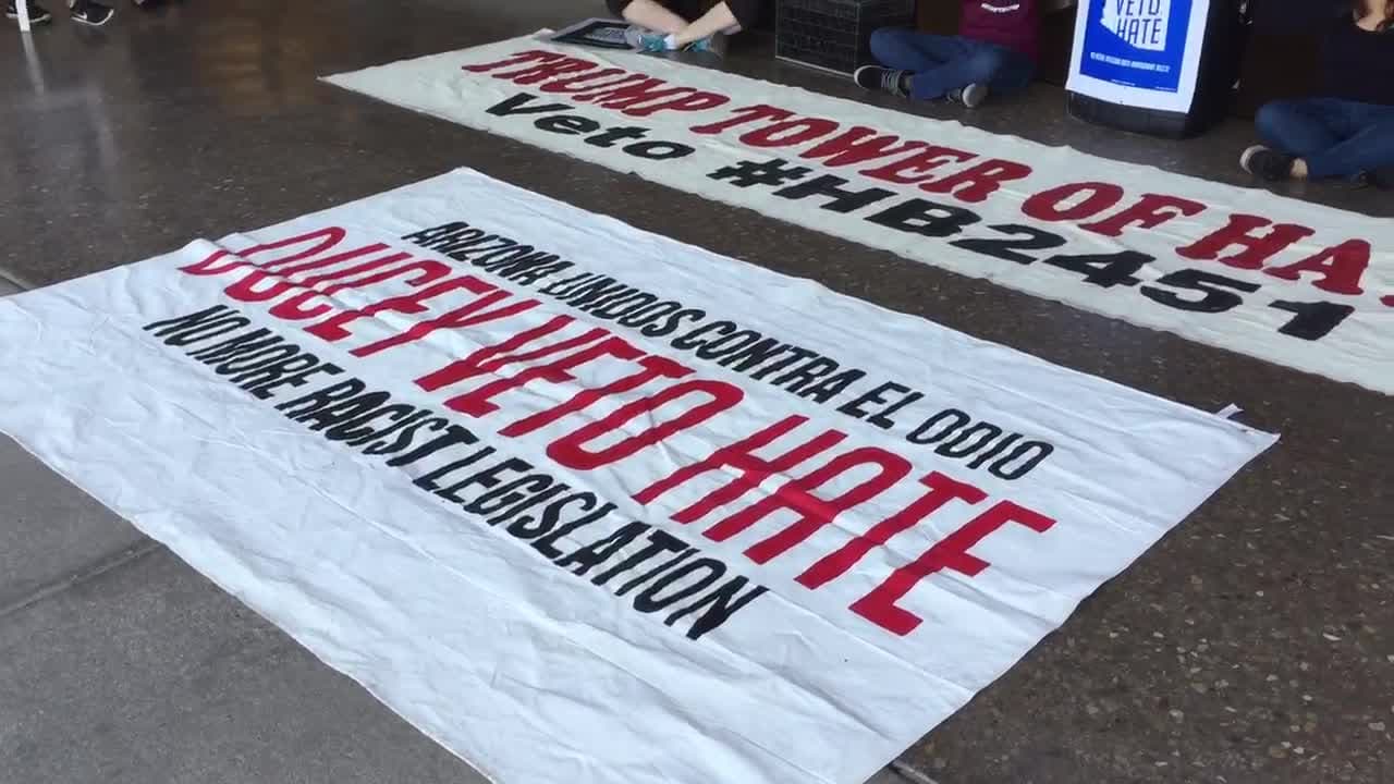 Manifestantes protestan en la oficina de Ducey