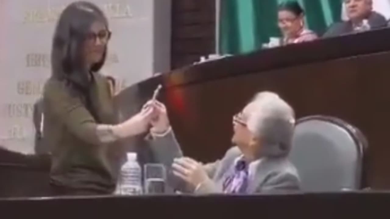 Momento insólito: diputada mexicana le regala un cigarro de marihuana a secretaria