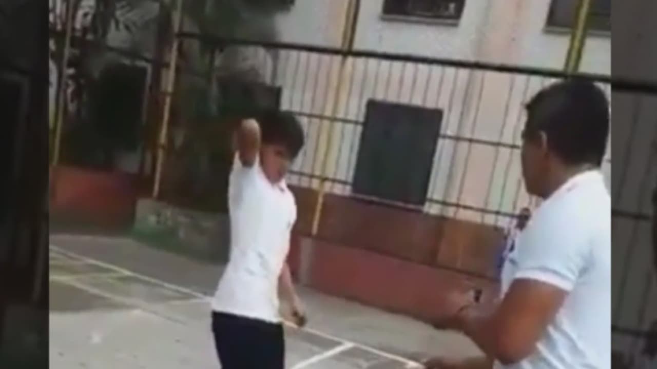 Momento insólito: niño intenta apuñalar a su maestro, supuestamente por haberlo castigado
