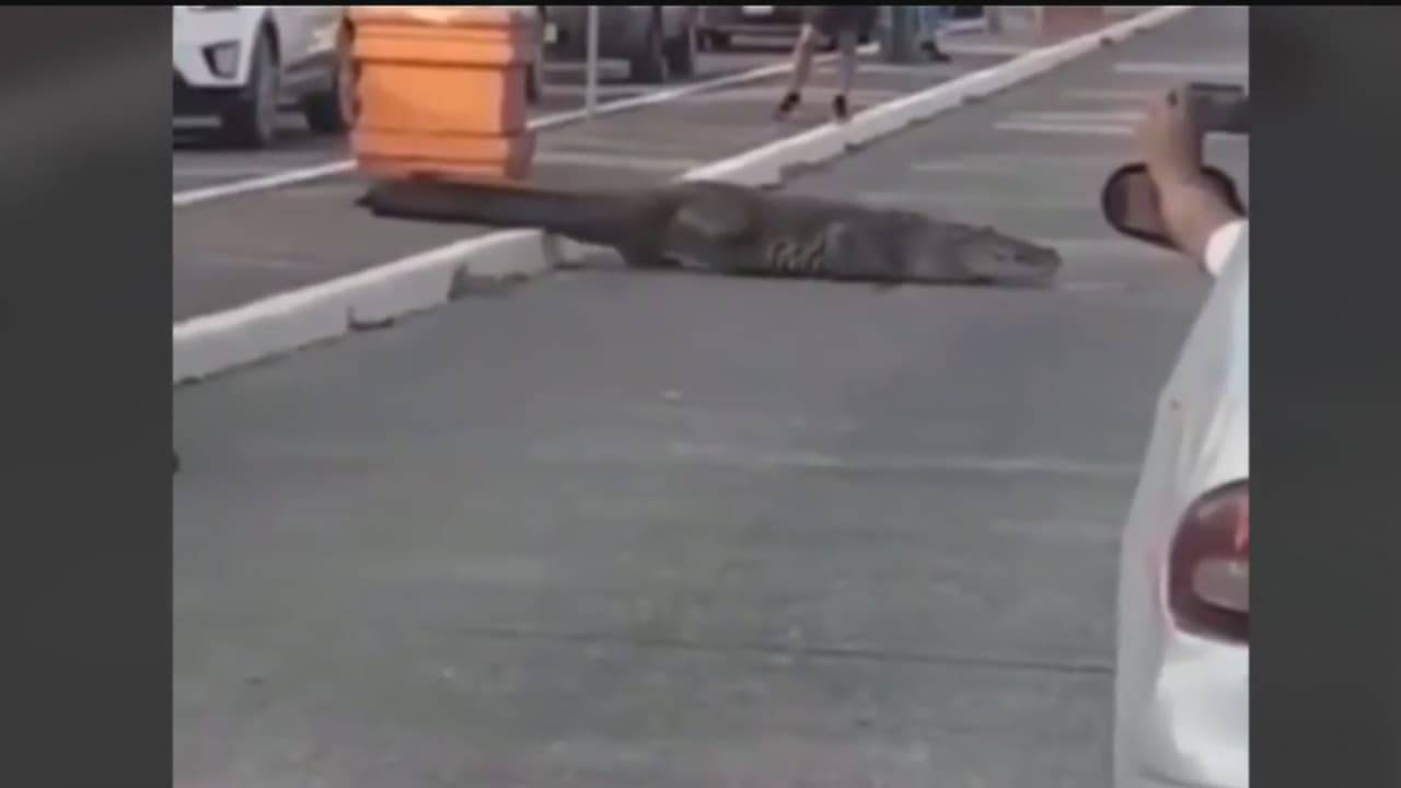 Momento insólito: un enorme cocodrilo se pasea por las calles de Tampico, México