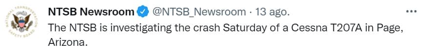 PAGE, Arizona – La Administración Federal de Aviación (FAA) y la Junta Nacional de Seguridad en el Transporte (NTSB) están investigando el accidente de un Cessna 207 de un solo motor que se estrelló el sábado pasado en el Parque Nacional Lake Powell en el noreste de Page, Arizona.