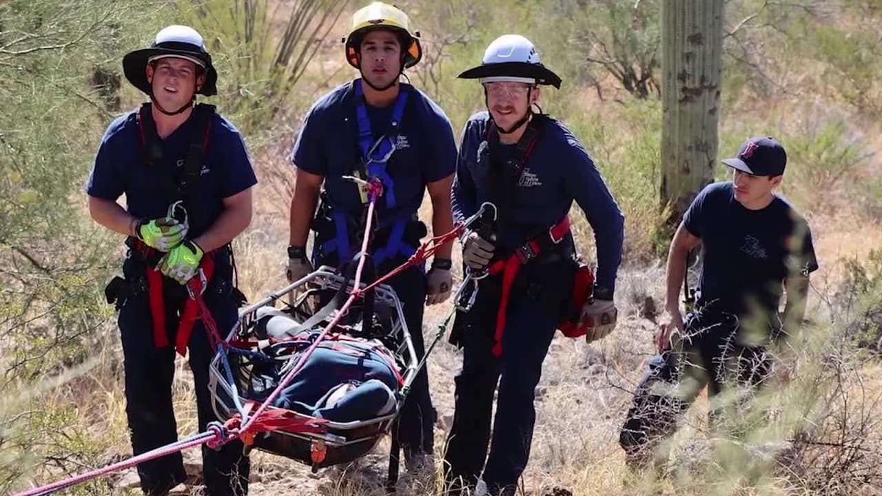 En video quedó registrado el rescate de una mujer que se encontraba caminando en Sentinel Peack y no pudo continuar su travesía, un equipo de bomberos de Tucson tuvo que realizar un operativo técnico para trasladarla a una carretera cercana.