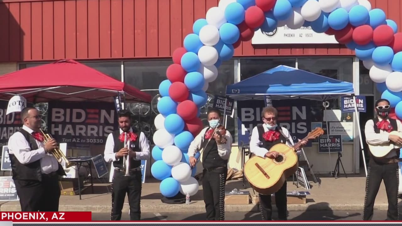 La campaña de Biden llegó al corazón de la comunidad hispana en Maryvale en la avenida 51 y McDowell, allí animaron a los asistentes con música de mariachi y banda, además de ofrecer tacos a quienes llegaron a votar.