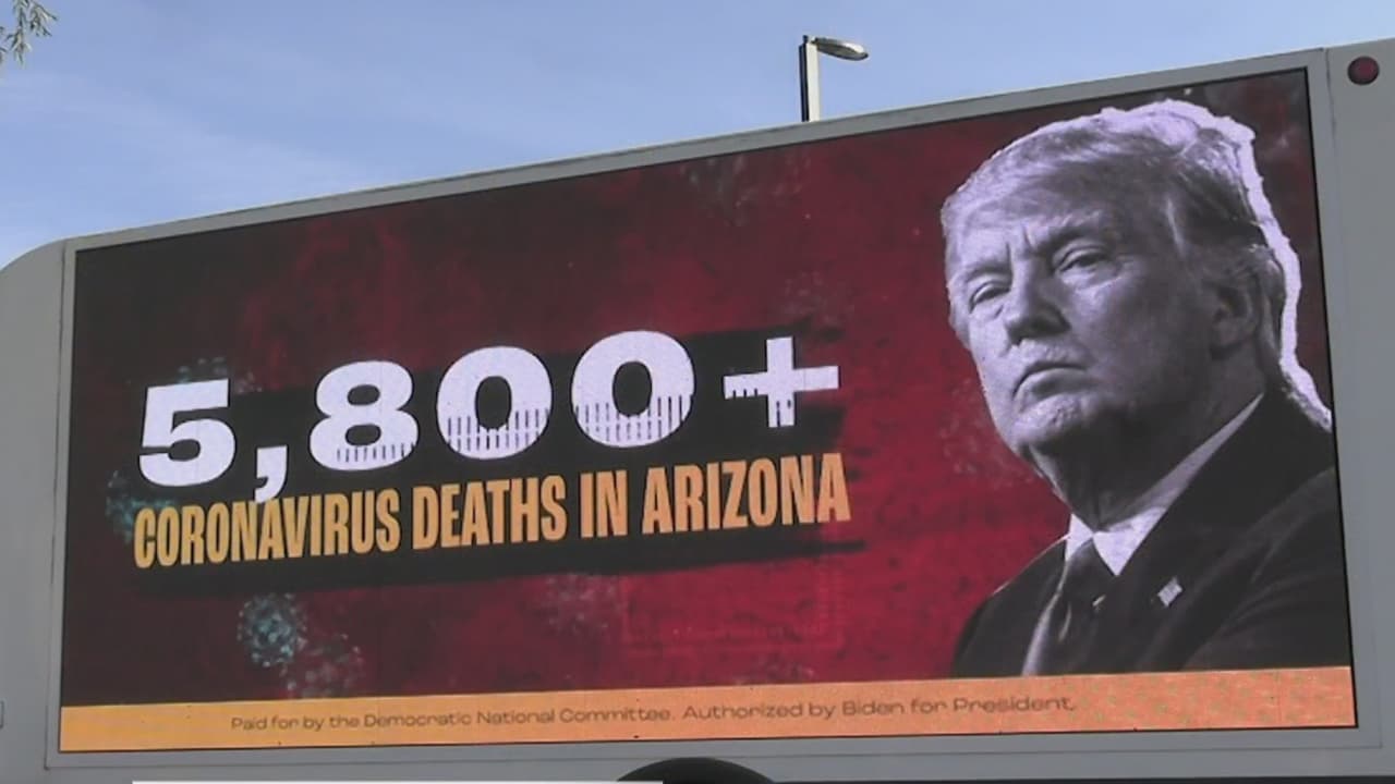 El presidente visitó Arizona por sexta ocasión y diversos sectores opositores mostraron su rechazo. Incluso, una valla espectacular móvil circuló por el centro de Phoenix con mensajes sobre la "fallida respuesta a la pandemia"