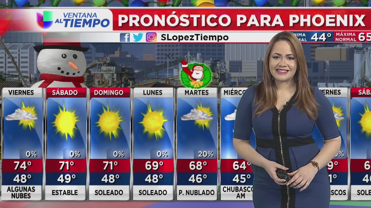 En Phoenix se prevén máximas en los mediados 70 grados, con presencia ligera de nubes. Se espera que continúen estas condiciones a lo largo del fin de semana.