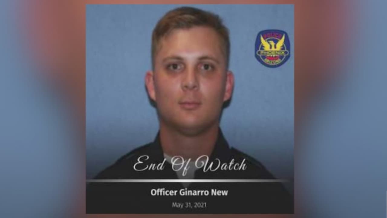 El oficial Ginarro New se diría al sur en Cave Creek Road cuando su patrulla fue impactada por un auto que se pasó una luz roja. El choque fue tan fuerte que un muro de contención fue derribado.