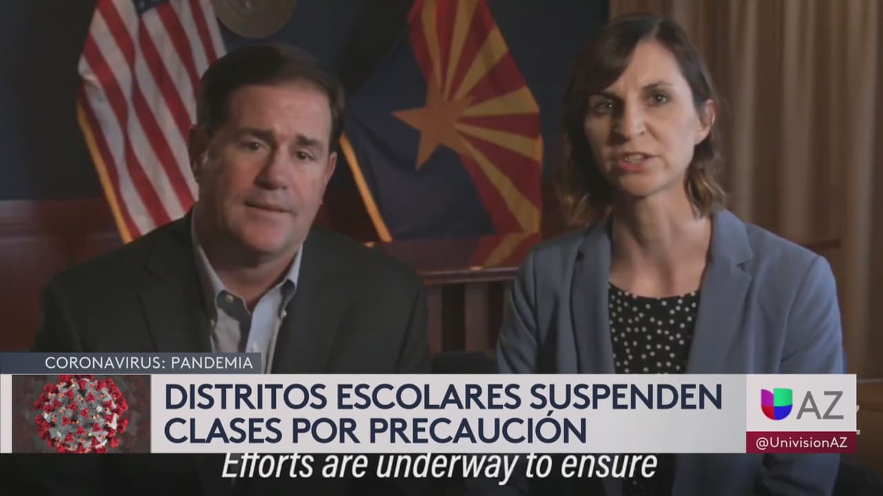 El gobernador Doug Ducey y la superintendente Kathy Hoffman anunciaron el 15 de marzo un cierre estatal de las escuelas de Arizona desde el lunes 16 de marzo de 2020 hasta el viernes 27 de marzo del 2020.