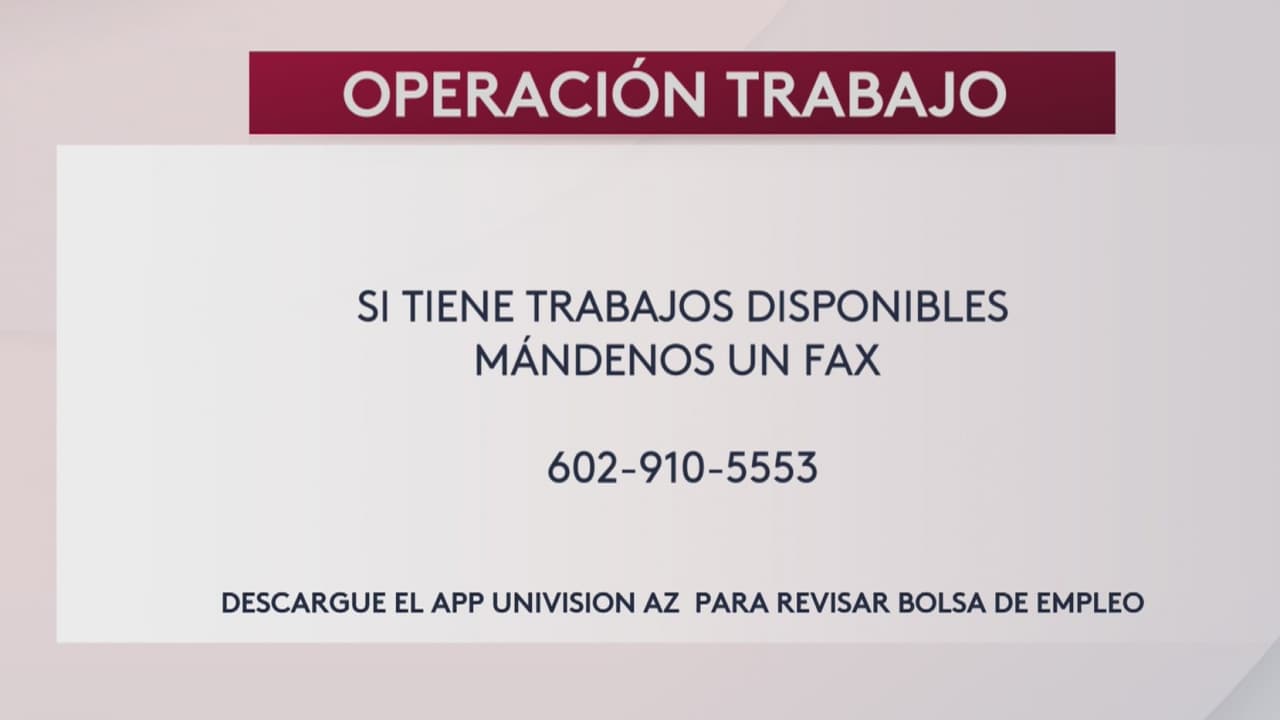 Le presentamos las vacantes en la región. Si tiene un trabajo disponible, envíe un fax a Univision Arizona.