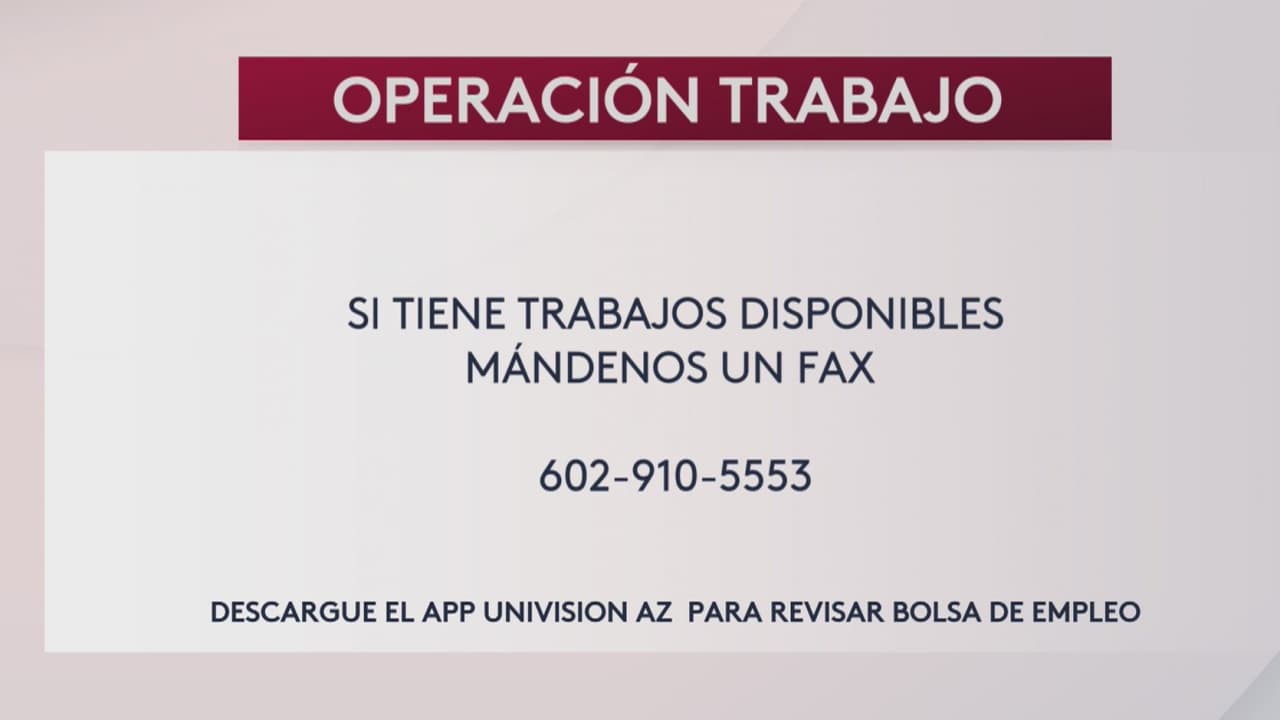Le presentamos las ofertas laborales disponibles en la región. Si tiene alguna oferta laboral puede comunicarse con Univision Arizona.