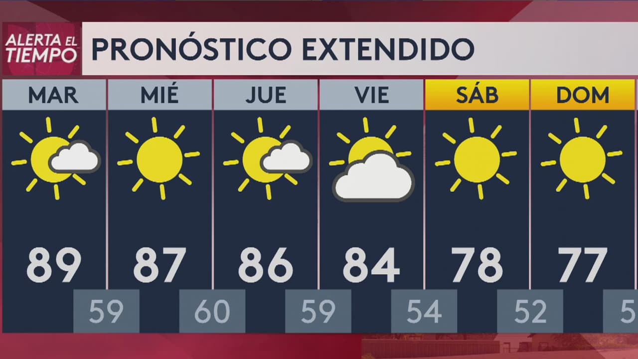 Para este martes, en Phoenix y sus alrededores se esperan temperaturas máximas cerca de los 89 grados Fahrenheit y mínimas de 60 grados. “Es probable que se espere temperaturas cálidas récord en los próximos días, mientras que este fin de semana comienza un moderado enfriamiento”, indica el Servicio Meteorológico Nacional de Phoenix. Para el sábado el valle del sol podría tener temperaturas máximas en el rango de los 70.