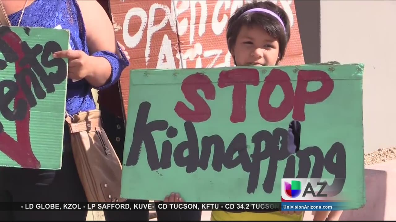 Padres de familia protestan frente al Departamento de Protección al Menor por supuesta negligencia.