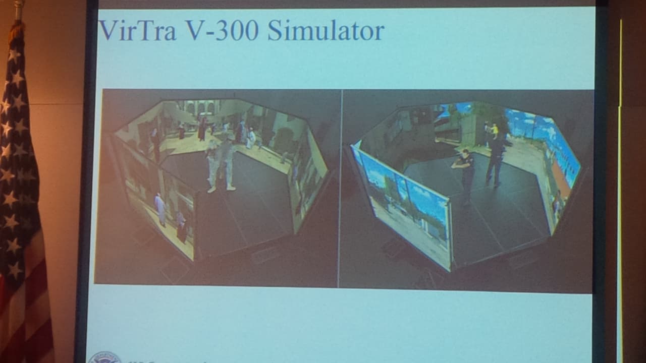 A través del simulador virtual VIRTRA V-300, que cuenta con cinco pantallas, los agentes se enfrentan a diferentes situaciones de peligro representadas en varios escenarios. El objetivo es preparlos para el uso adecuado de la fuerza y minimizar los incidentes en que las personas mueren por disparos.