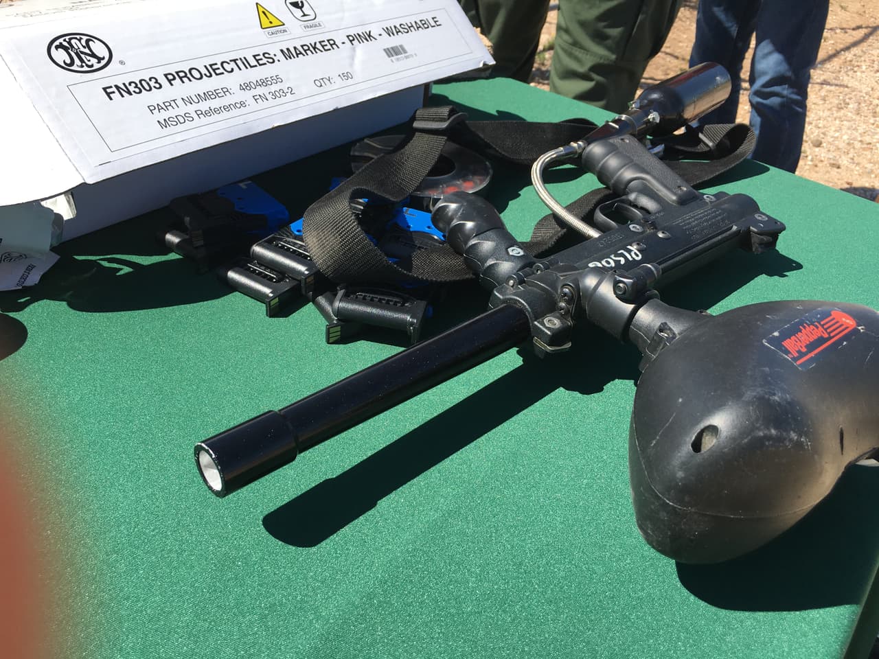 Los dispositivos no letales son variados e incluyen pistolas de balas de goma.