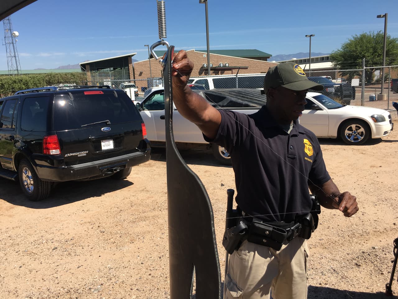 “Dependiendo de cómo reaccione el agente, el coordinador de la capacitación determina si su respuesta fue apropiada”, explicó Vicente Paco, vocero de la Patrulla Fronteriza, durante el entrenamiento llevado a cabo en las instalaciones del sector Tucson.