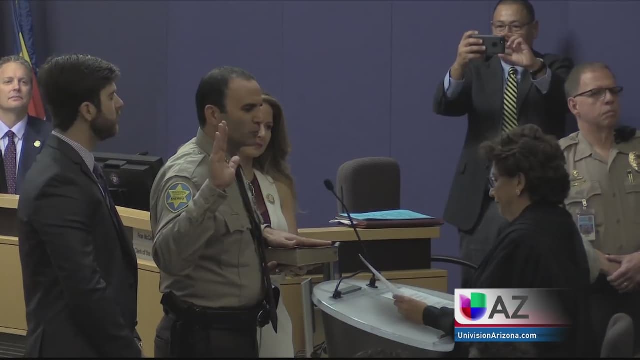Acompañado de su esposa y su hijo Paul Penzone rindió juramento como alguacil del condado Maricopa y reiteró su compromiso buscar servir a toda la comunidad.