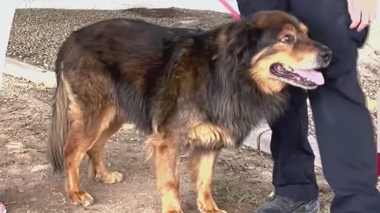 Tras rescatar al animal, de apenas 2 años, fue puesto bajo el cuidado de la Sociedad Protectora de Animales de Arizona. Es una mezcla de Bernese Mountain.