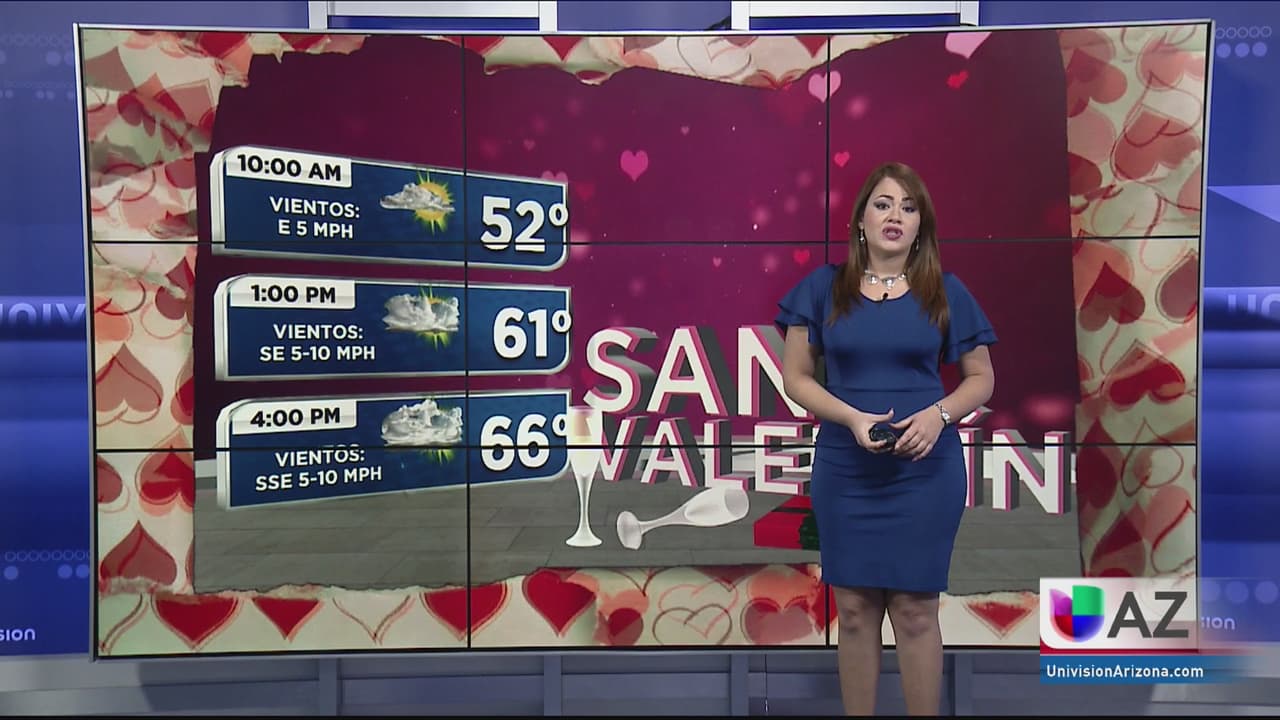 Prepárese para un Día del amor y la amistad con cielos ligeramente nublados y bajas posibilidades de lluvia, pero con temperaturas máximas de 66 grados, condiciones agradables para salir a comer en pareja.