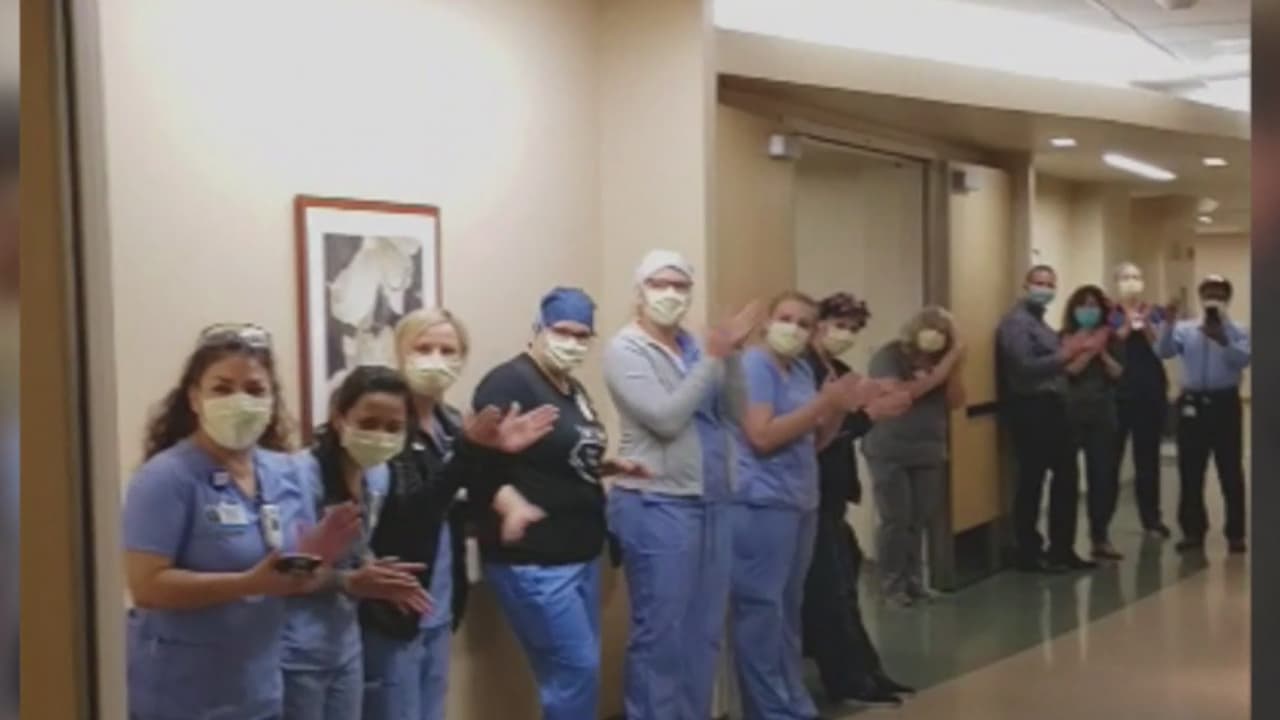 Personal médico despide a un paciente que permaneció 44 días en el hospital por coronavirus