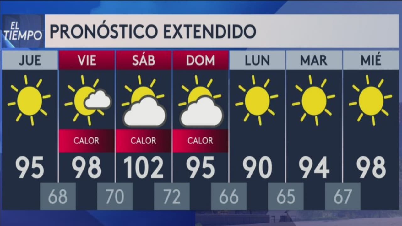 Se prevén temperaturas máximas cerca de los 93 grados Fahrenheit y mínimas de 58 grados en Phoenix y algunas áreas aledañas con cielos nublados. Se espera que para la próxima semana las temperaturas estarán entre los 90 o 100 grados cada día, según el Servicio Meteorológico Nacional de Phoenix.