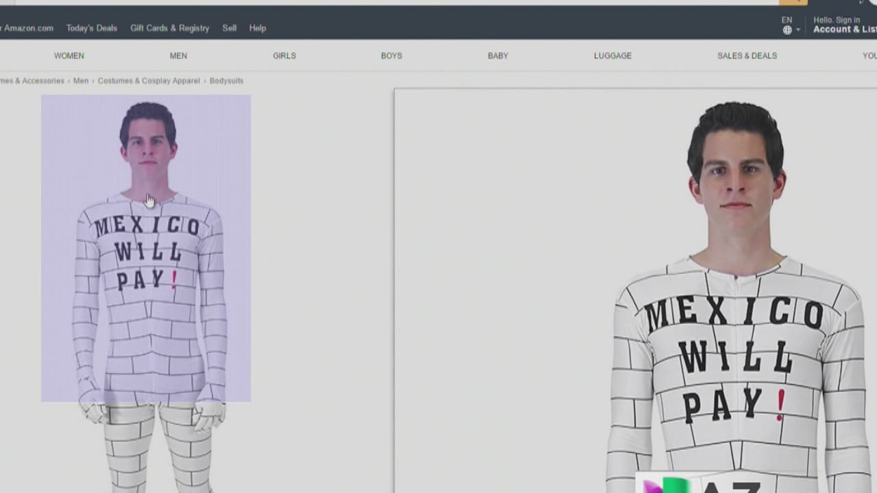 Un disfraz que simula un muro con la frase “Mexico will pay” ha generado diferentes reacciones y ha y quienes lo consideran racista y anti inmigrante.
