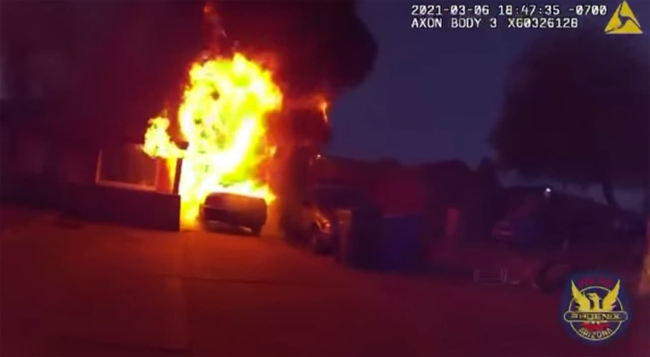 PHOENIX, Arizona. - El Departamento de Policía de Phoenix difundió el video del rescate de un hombre en su auto después que chocara y se incendiara cerca de la calle 36 y Osborn Road el 25 de marzo.