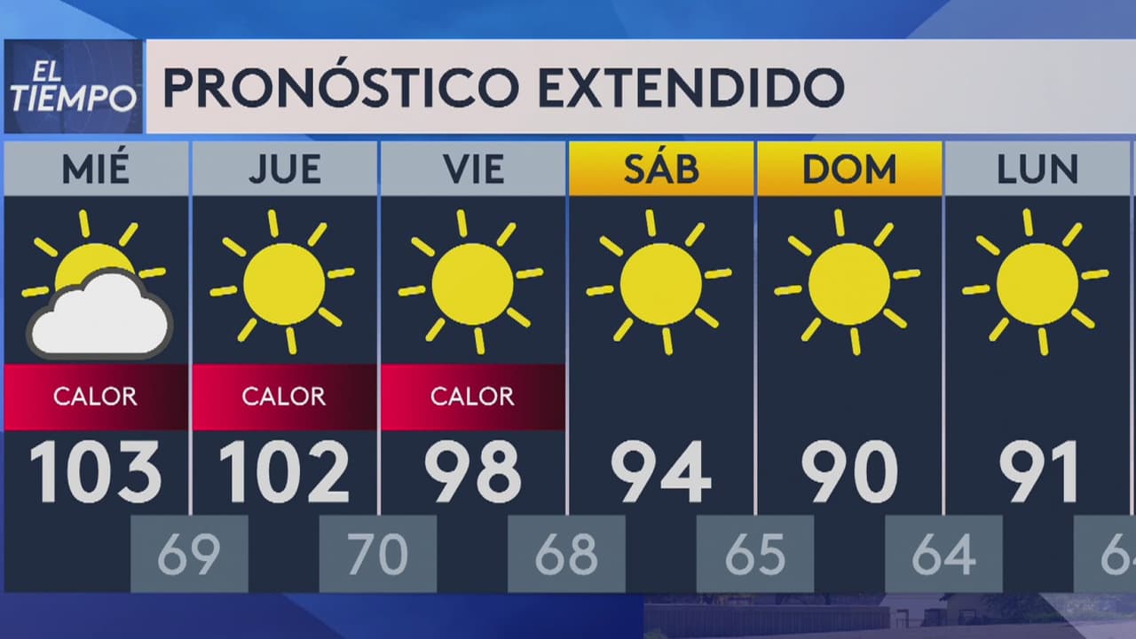 El área metropolitana de Phoenix tendrá temperaturas máximas cerca de los 102 grados Fahrenheit y mínimas de 69 grados este miércoles. Para el domingo, la región podría ver temperaturas en el rango de los 80.