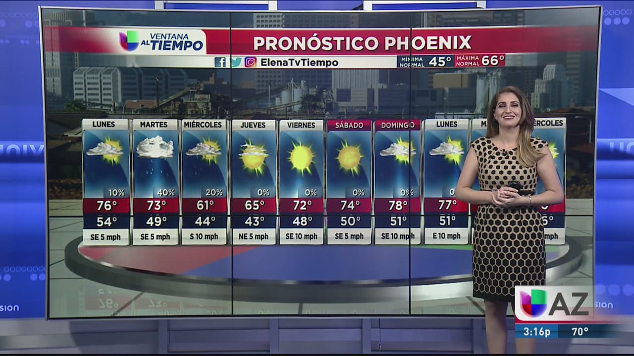Para este lunes habrá una ligera posibilidad de lluvias, mientras que el martes subirá hasta un 40%. Las máximas pasarán los 70 grados.