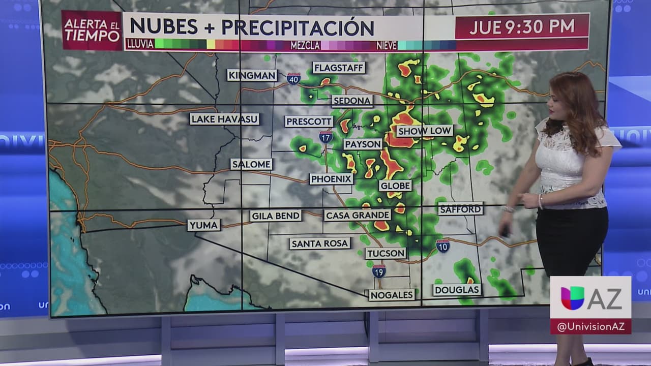 Una alerta de inundación repentina está en vigor para el centro-sur de Arizona desde esta tarde hasta el sábado por la noche. Esto significa que los pronósticos de la llegada de agua están presentes de manera que cualquier tormenta tiene el potencial de producir lluvias muy fuertes en Phoenix, Tucson y Flagstaff. La recomendación de las autoridades es no conduzca por carreteras cubiertas de agua.