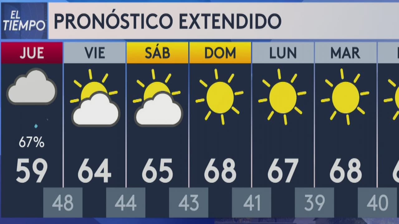 ¡No guarde el paraguas! Este jueves se esperan lluvias en la región con temperaturas máximas de 61 grados Fahrenheit.