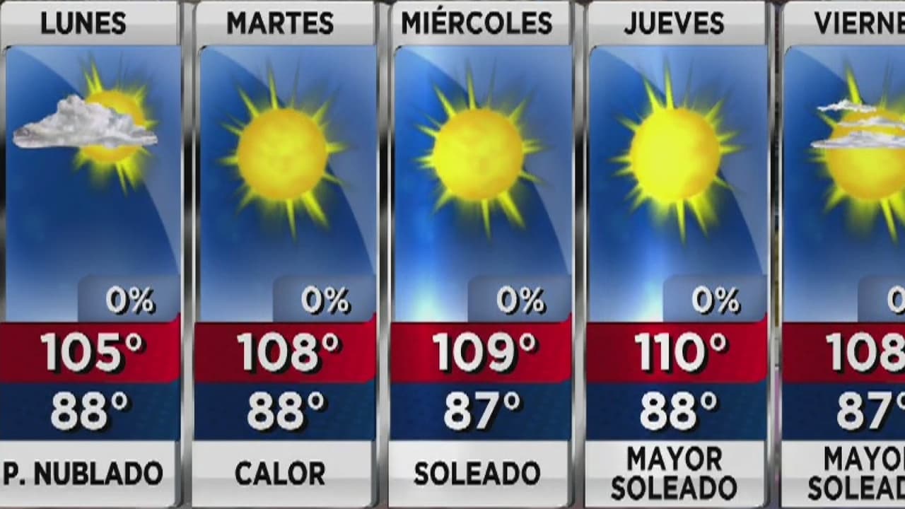 Se espera que las temperaturas máximas lleguen a niveles en los 105 grados, con condiciones de nublados parciales.