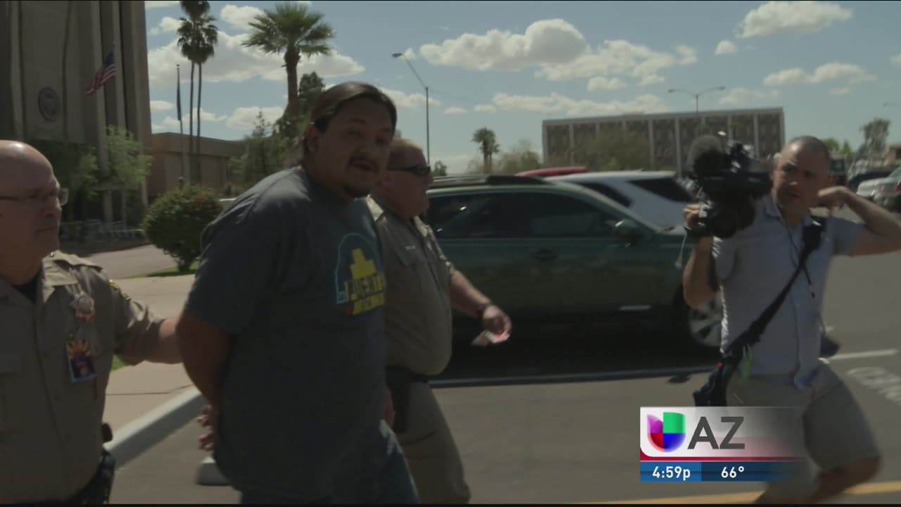 El líder comunitario y director ejecutivo de Puente Arizona, Carlos Garcia, fue arrestado durante una manifestación en las afueras de la oficina del gobernador Doug Ducey.