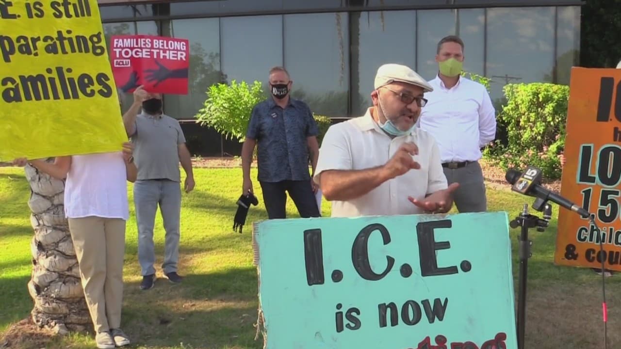 Protesta contra los casos de menores inmigrantes que están siendo trasladados a hoteles por ICE
