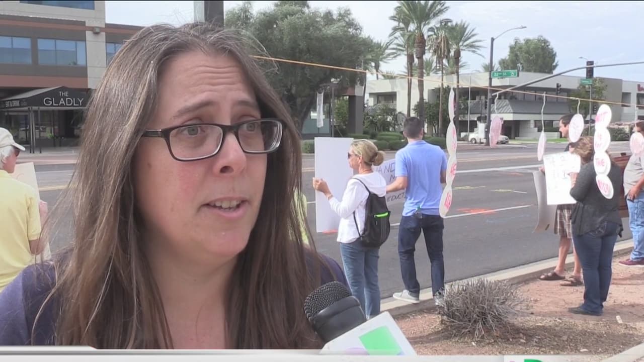 Decenas de personas salieron a protestar y pedir al gobernador de Arizona Doug Ducey que se oponga a la reforma fiscal de Trump; ya que aseguran afectaría a los más pobres, beneficiaria a los ricos y aumentaría la deuda del país.