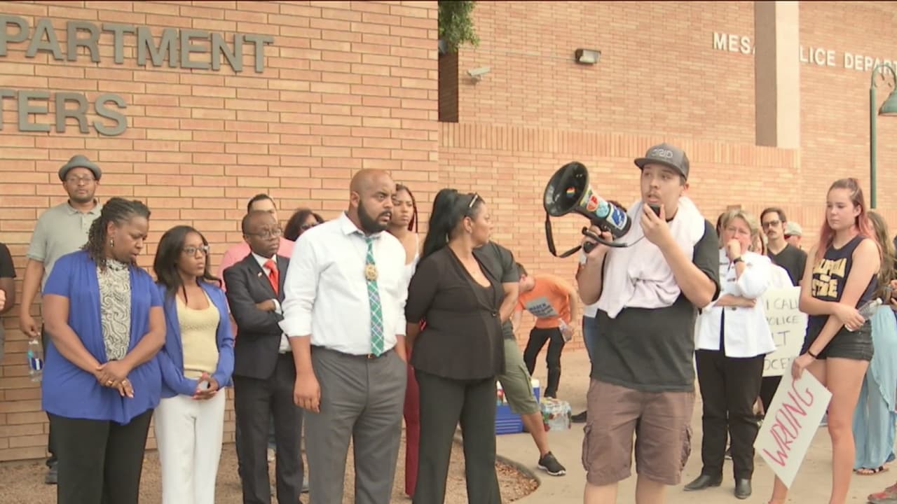 Protestan frente a las instalaciones de la Policía de Mesa para exigir investigaciones a fondo de los casos de violencia policiaca