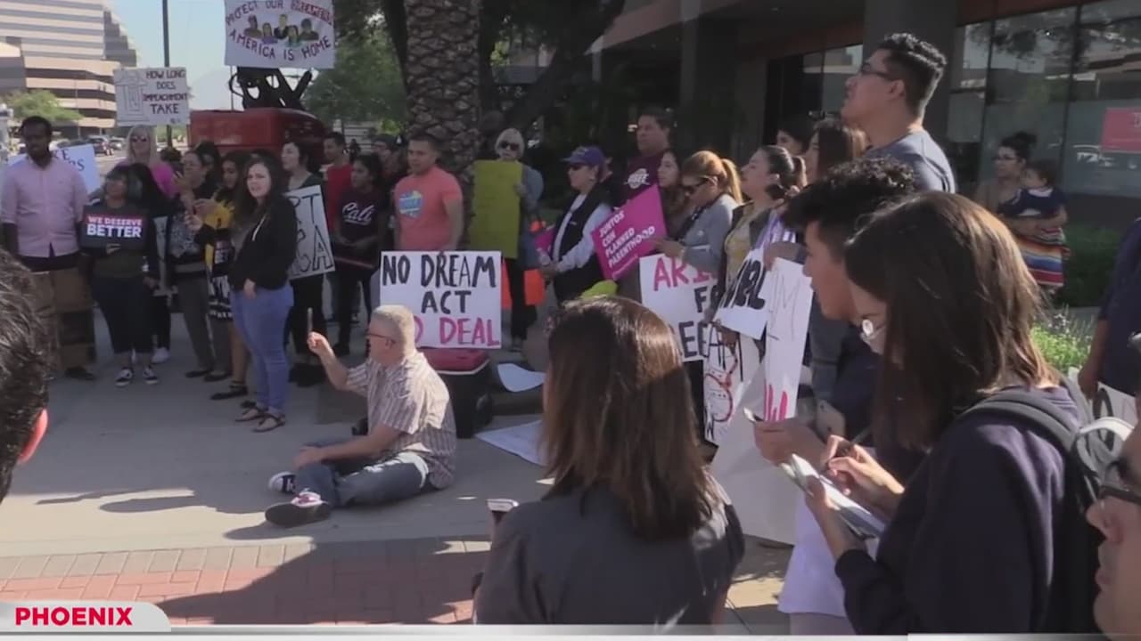 Activistas realizaron una protesta afuera de las oficinas de senador Flain McCain, para pedirle que vote en contra de la aprobación del presupuesto a menos de que se incluya el Dream Act.