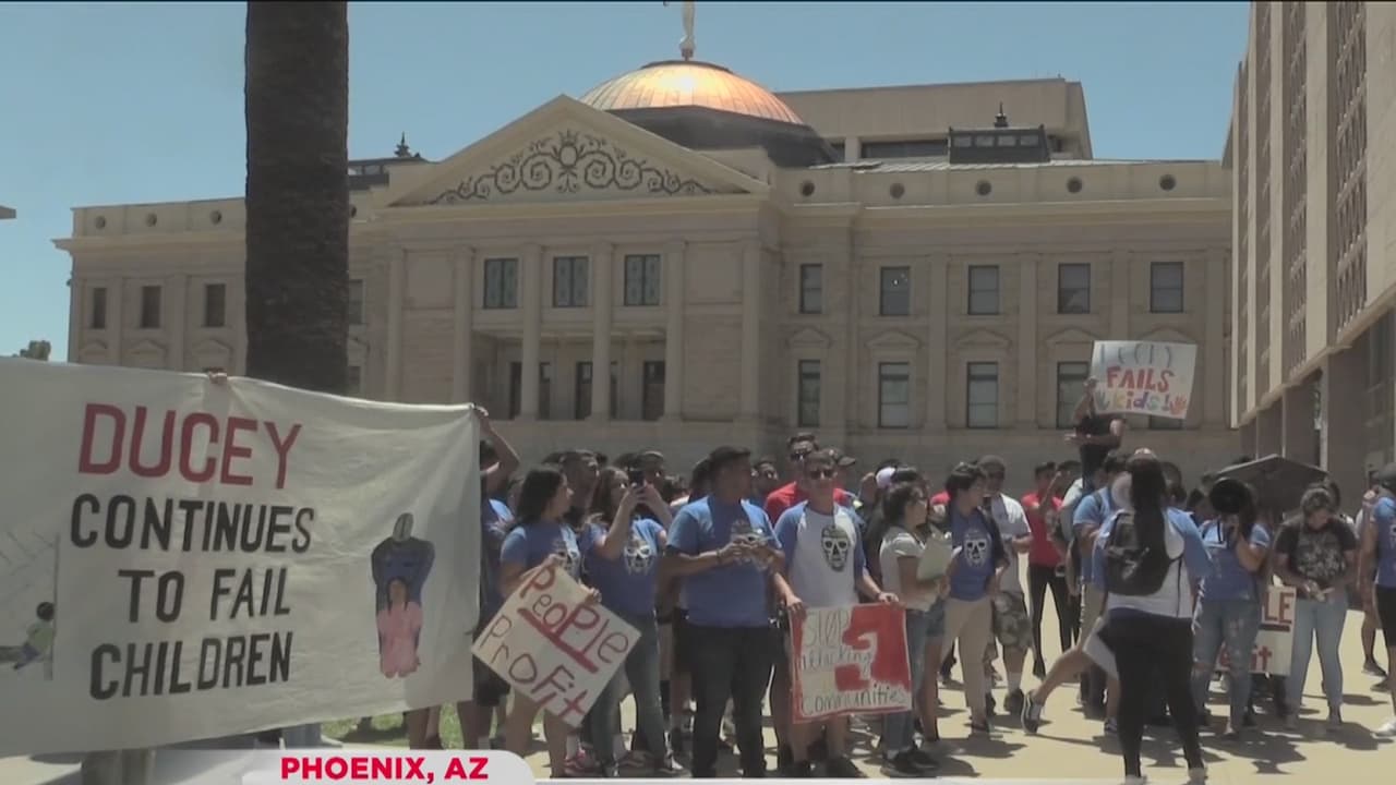 Decenas de personas se reunieron en el Capitolio estatal para protestar en contra de la separación de familias y acusaron al gobernador Doug Ducey de apoyar esta política de "cero tolerancia" a familias migrantes.