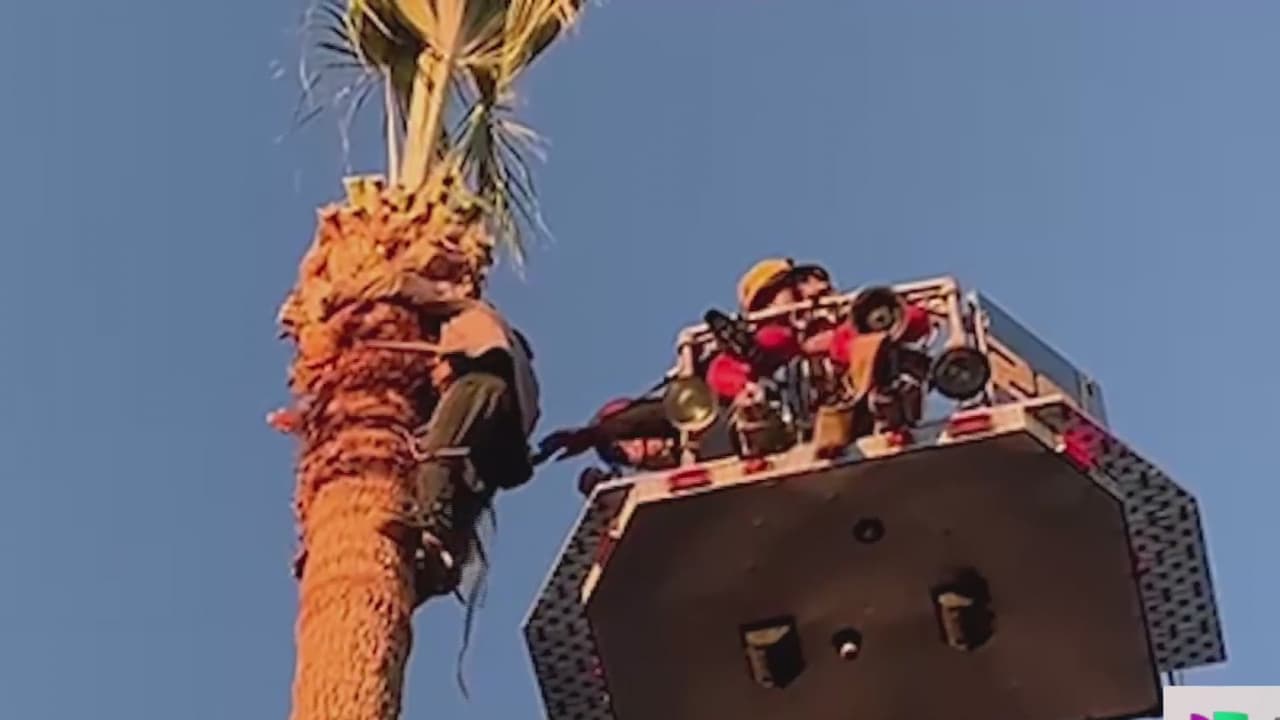 Queda atrapado a 50 pies de altura mientras podaba una palma en una residencia en Phoenix